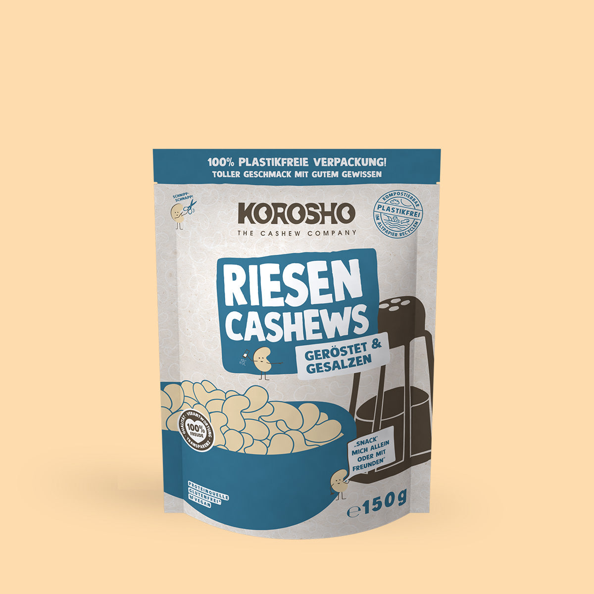 - Knackige Cashews in 4 tollen Geschmacksrichtungen: „Natur“, „Gebrannt“, „Honig BBQ“ & „Geröstet & Gesalzen“